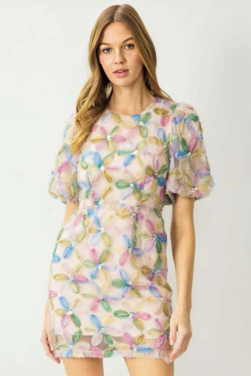 Pink Sequin Floral Dress