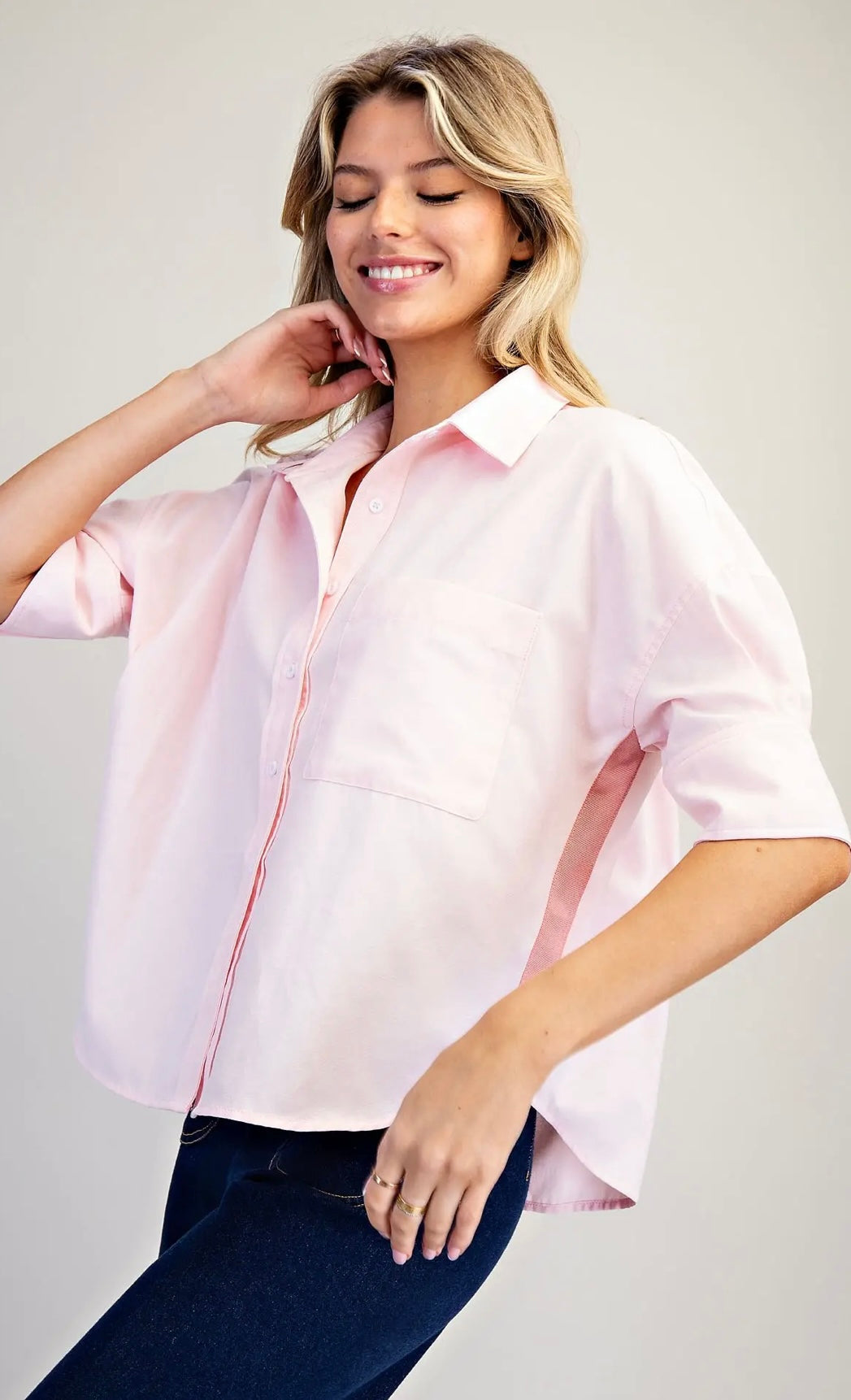 Contrast stripe detailing button down shirt.
